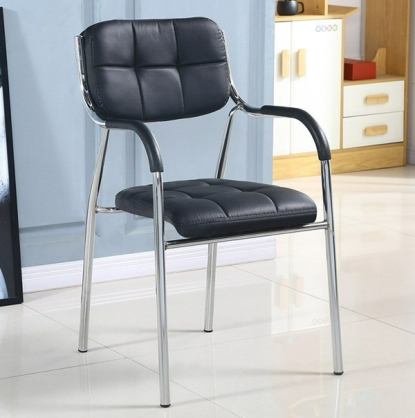 Enhance your office, reception area, or home with this sleek and modern guest chair. Designed with a durable stainless-steel frame, padded PU leather seat and backrest, and ergonomic armrests, this chair offers both style and comfort. The tufted upholstery adds a touch of sophistication, while the sturdy metal legs ensure stability and durability.